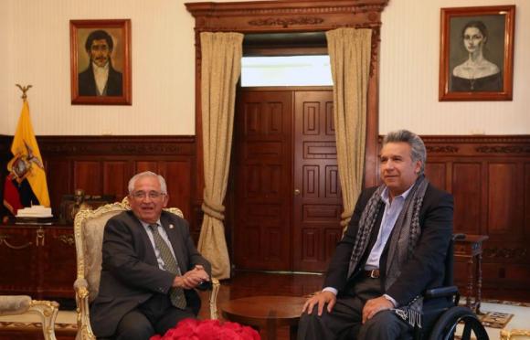 Quito, 5 jul (Andes).- El presidente de Ecuador, Lenín Moreno, se reunió con el alcalde de Loja, Bolívar Castillo, como parte del proceso de diálogo nacional que impulsa desde el gobierno.