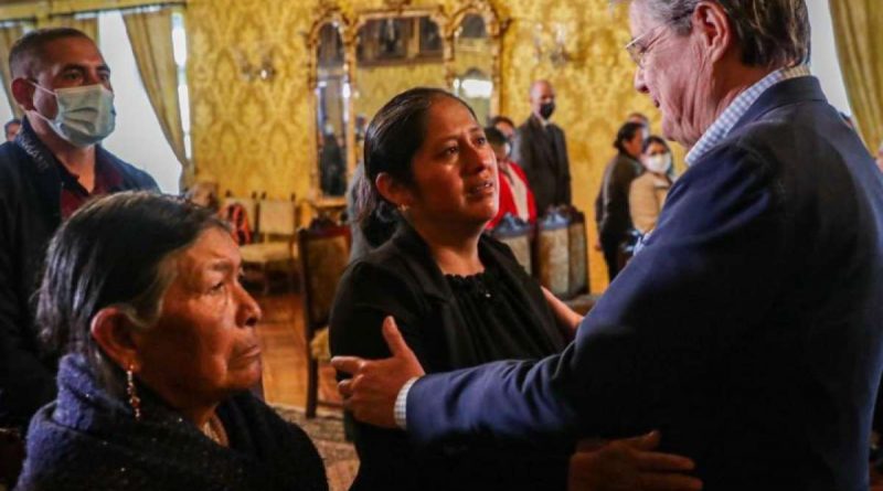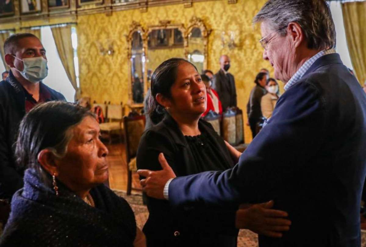El presidente Guillermo Lasso recibió este martes 12 de julio a los familiares de José Chimarro, el militar fallecido durante un enfrentamiento con supuestos manifestantes mientras protegía un convoy de tanqueros de combustible, en Shushufindi, el pasado 28 de junio.
